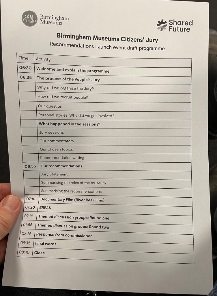 Yesterday evening, Saad and I went to an inspiring launch of the recommendations of the Birmingham Museums’ citizens’ jury.